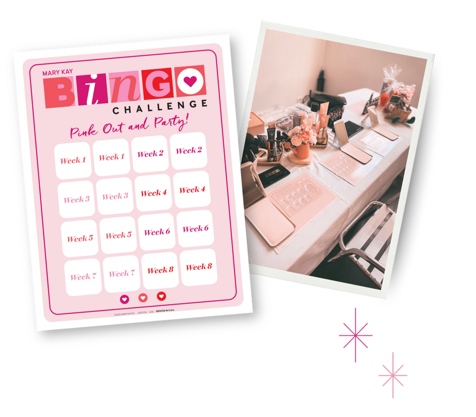 A global bingo challenge to the MK world! Mk will release 2 tasks a week for 8 weeks. You will need to complete all of the tasks (things like hosting a skincare party, getting a new customer, sharing your fav MK quote, etc.).The goal is for you to PINK OUT all of your card (completing all 16 tasks) !